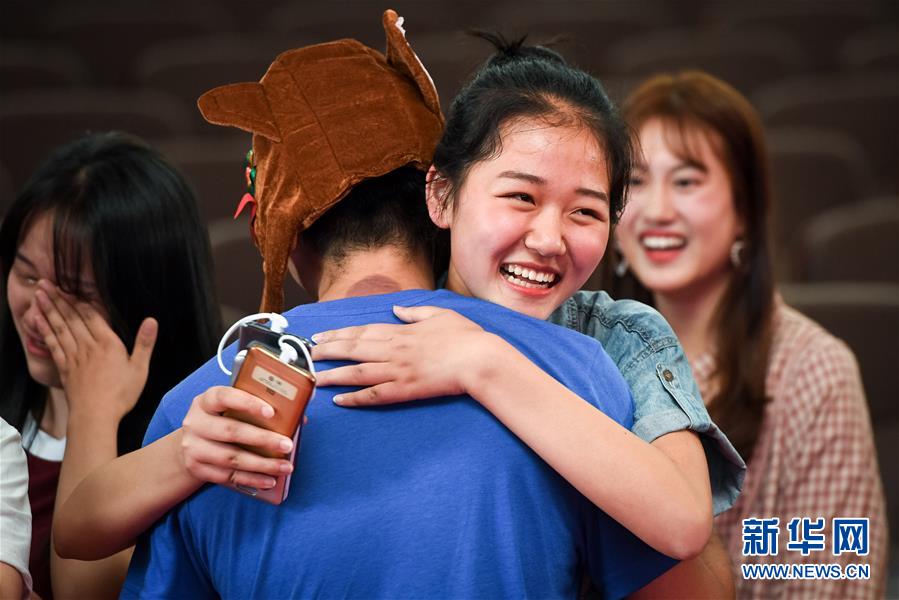 6月9日,合肥市第三十五中学的高三毕业生在毕业典礼上与老师拥抱。