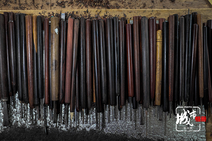 工欲善其事,必先利其器。从事不同的步骤,木雕师傅都会用不同的刻刀。仅是修光环节,用到的刻刀便有百余种。新华网 李相博摄