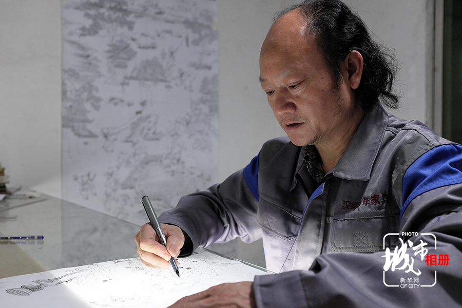 从画图,到打坯、修光,都靠师傅一笔笔、一刀刀做出来,每年这些师傅的工作量,只能制作5-6件大的家具。即便这样,陈宝华也从未考虑过扩大规模,而是追求技艺上每年都有新的突破。新华网李相博 摄