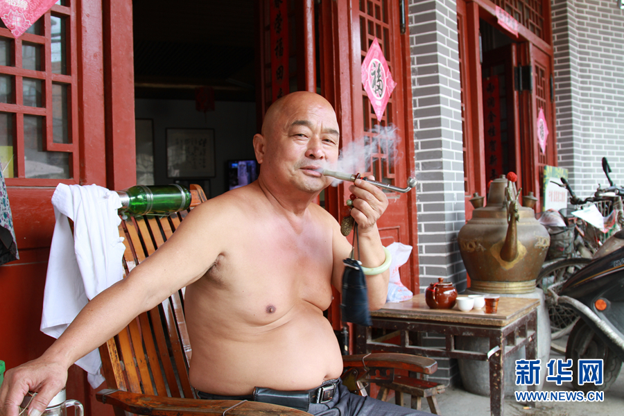南阁茶馆的张老板,每天早晨五点前准时开门,挂上鸟笼,摆好桌椅,就坐等茶客上门。忙中偷闲,他也要坐下来喝口茶,抽袋烟。新华网发(纪广兰摄)