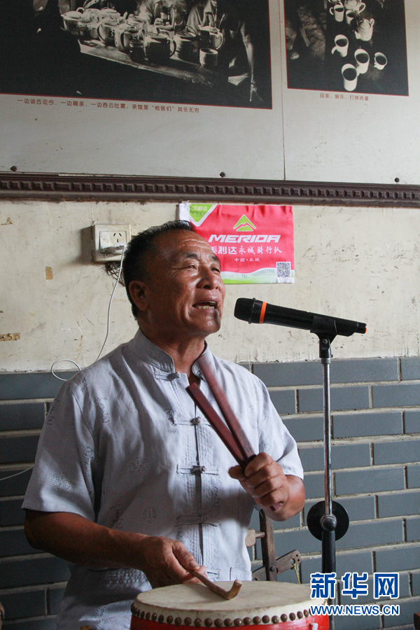 听书说书是茶馆重要文化之一,说的人津津乐道,听的人神情关注,淮北大鼓、坠子戏、泗州戏在此久盛不衰。新华网发(张恩水摄)