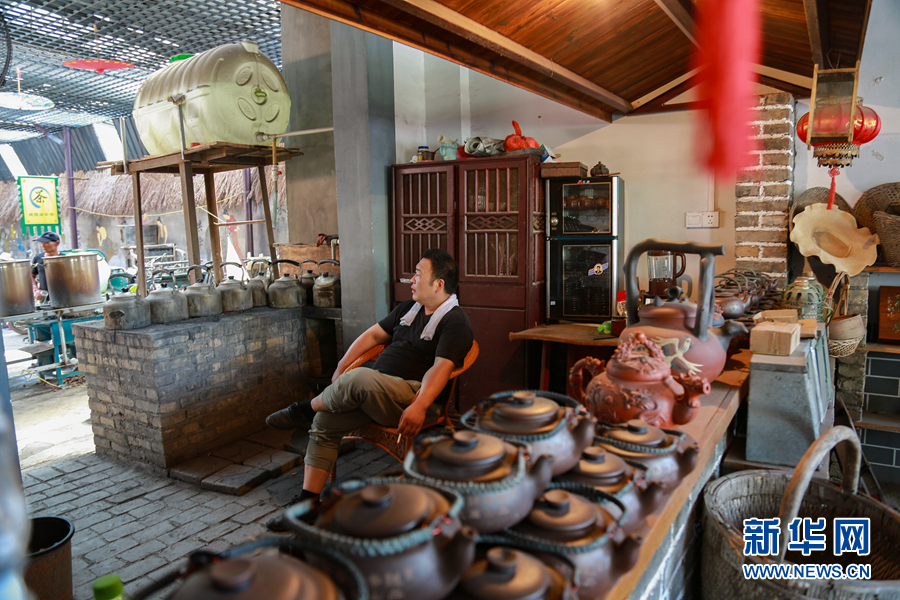 在临涣的一家茶馆里,随处可见大大小小的水壶,诉说着千年古镇的独特文化。新华网发(李绪林 摄)
