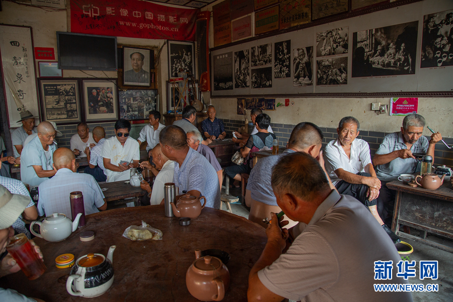 每天天一亮,村民便从四面八方赶来,他们家里几乎不烧水,喝惯了茶馆的茶。一元或者五角一壶,茶水自续,无限量供应,一呆就是大半天。新华网发(李绪林 摄)