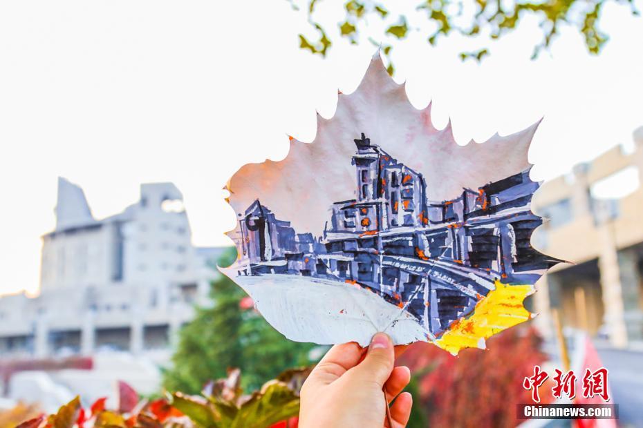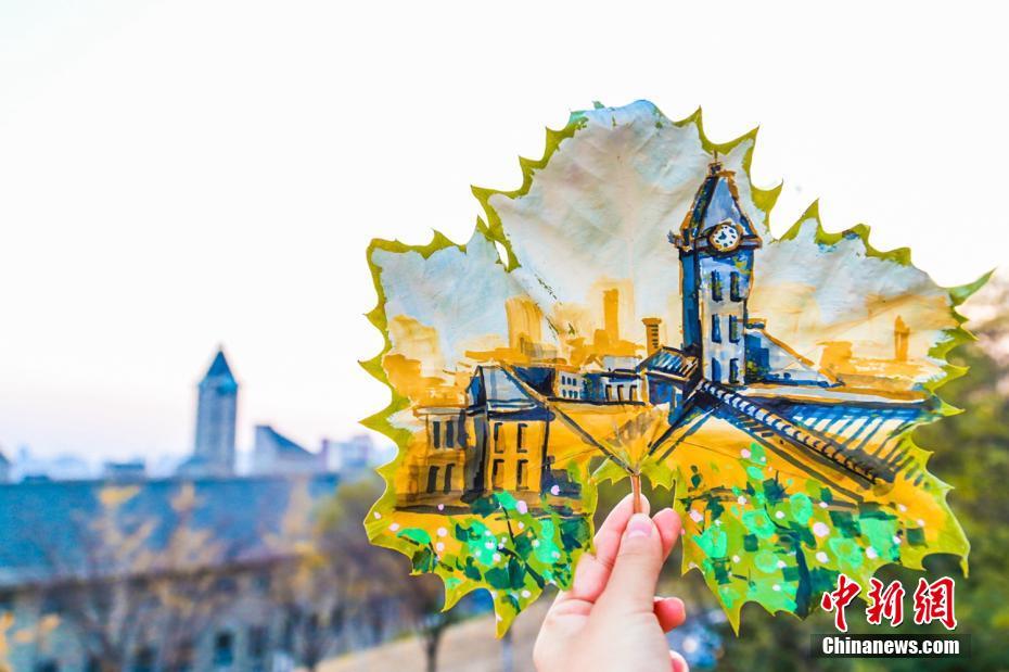 在这个落叶纷飞的深秋时节,大连东软信息学院三位女同学将美妙的图案绘在了落叶上,用创意给落叶开发出了另外一种美。这些落叶画分别呈现了学校里的石刻、火车头、钟楼、图书馆等标志性景观。