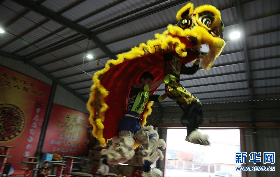 醒狮,是融武术、舞蹈、音乐等为一体的传统民俗文化。醒狮属于中国狮舞中的南狮,被认为是驱邪避害的吉祥瑞物,每逢节庆,或有重大活动,必有醒狮助兴,长盛不衰,历代相传。新华网发(冯小敏摄)