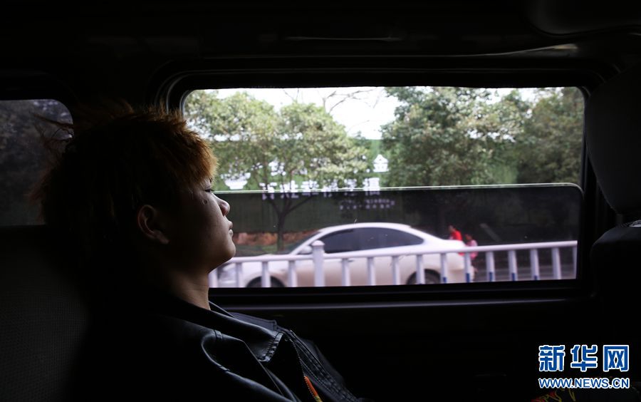 今年17岁的李学友是广西玉林人,练习舞狮5年,大家叫他“歌神”,图为:2019年3月16日,“歌神”在车上发呆。