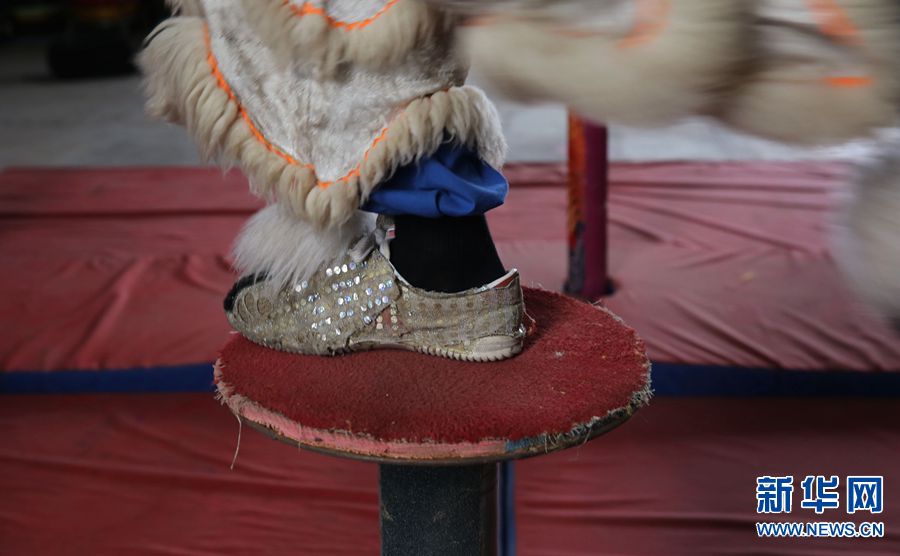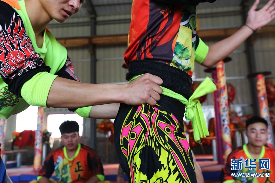 腰带是联系狮头狮尾的“纽带”,也是狮尾给狮头传递动作信号的位置,双手一抖,意味着动作的开始。