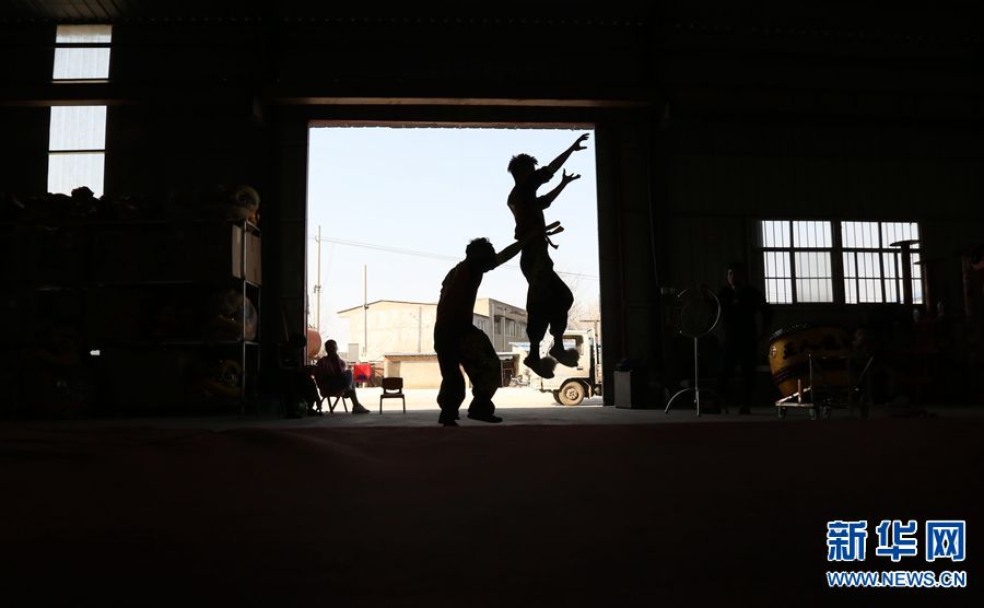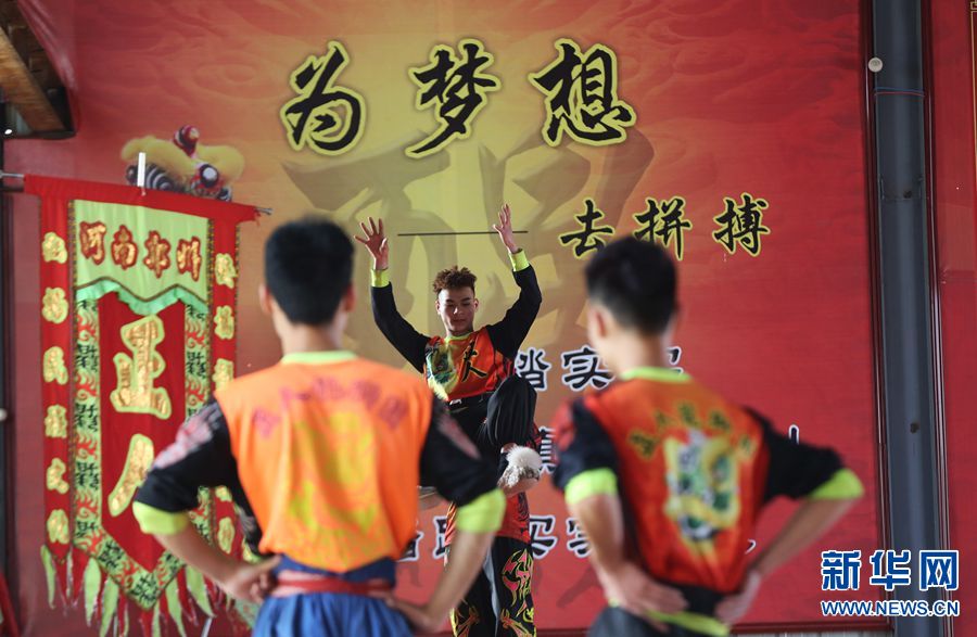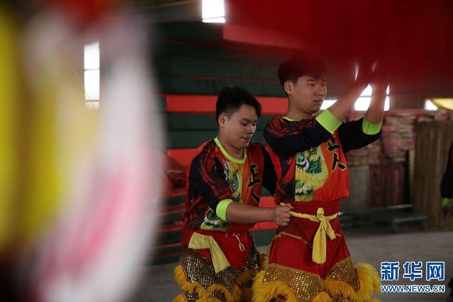 17岁的赵丁康(右)练习舞狮三年,除了自己的花销,每月往家里邮寄一千元。