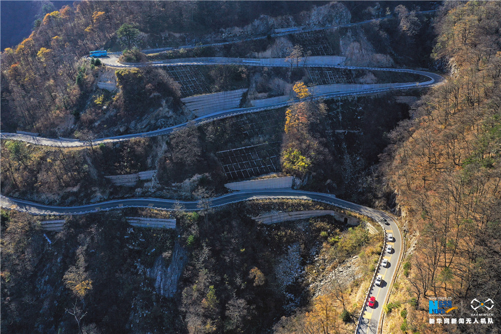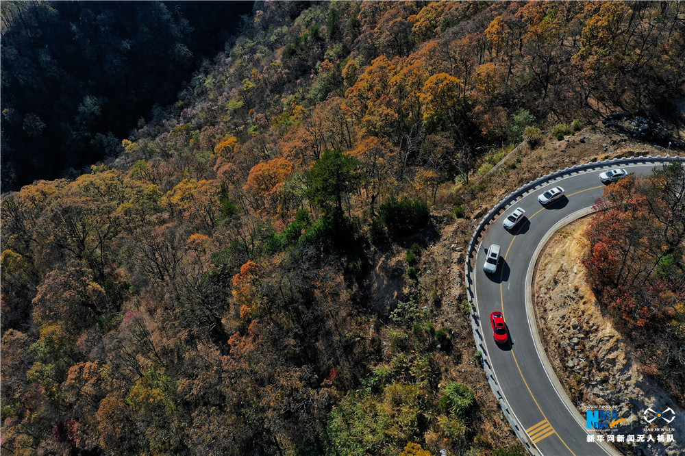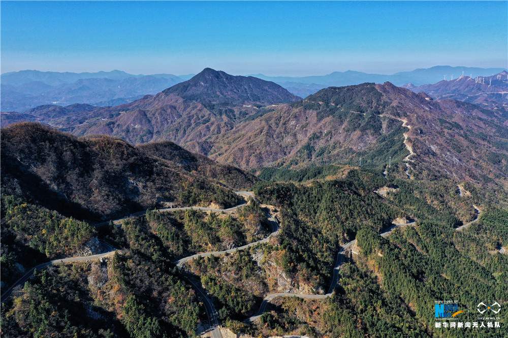 初冬时节,有着“中国红岭公路”美誉的马丁公路蜿蜒陡峭,在大别山腹地盘旋如龙。马丁公路起于安徽省六安市金寨县南溪镇丁埠村,止于金寨县马鬃岭景区,沿途满山缤纷盛装,行驶其中,体验惊险刺激的同时又将美景尽收眼底。新华网发(李斌摄)