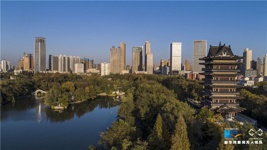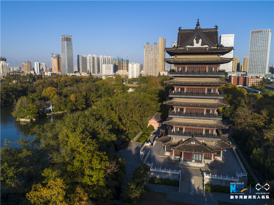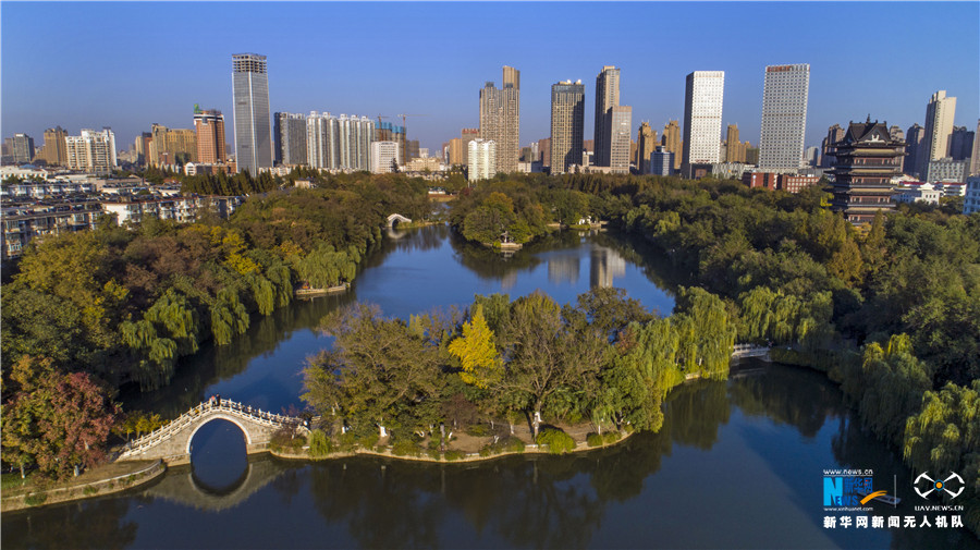 近日,无人机航拍的合肥包公园。新华网发(张大岗 摄)