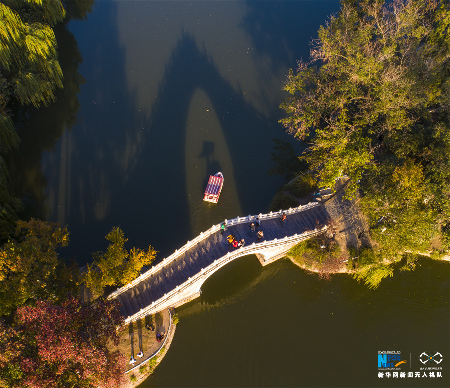 初冬时节,合肥包公园里的银杏、枫树迎来了最佳观赏期,金黄色、火红色的叶子挂满枝头,吸引大批市民前往观光游玩。