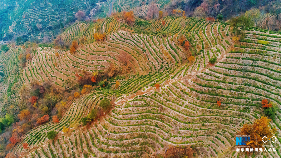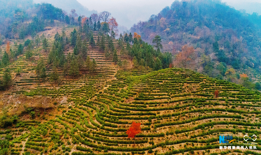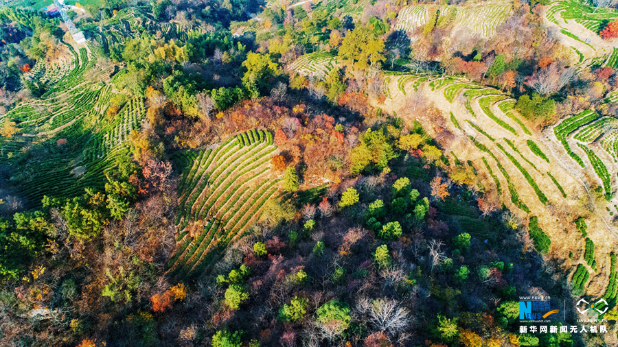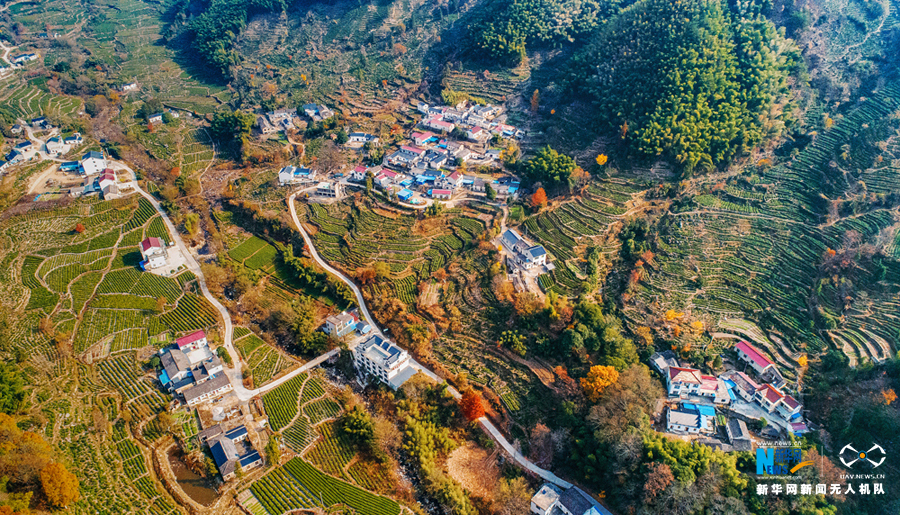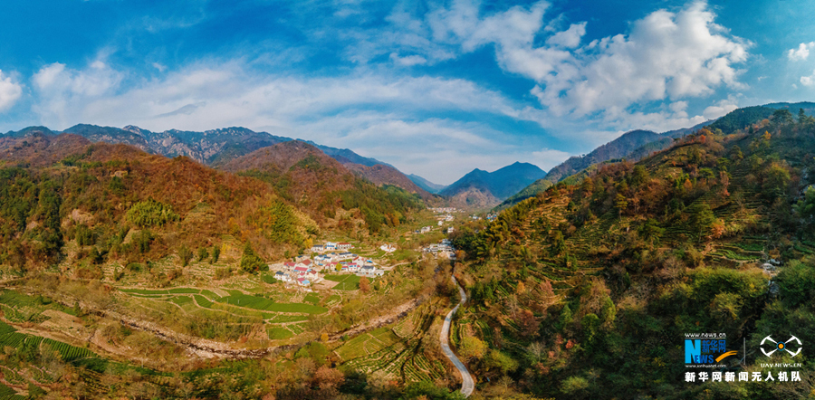 这是11月24日航拍的安徽省青阳县陵阳镇黄石溪村周边景色。新华网发(陈磊 摄)