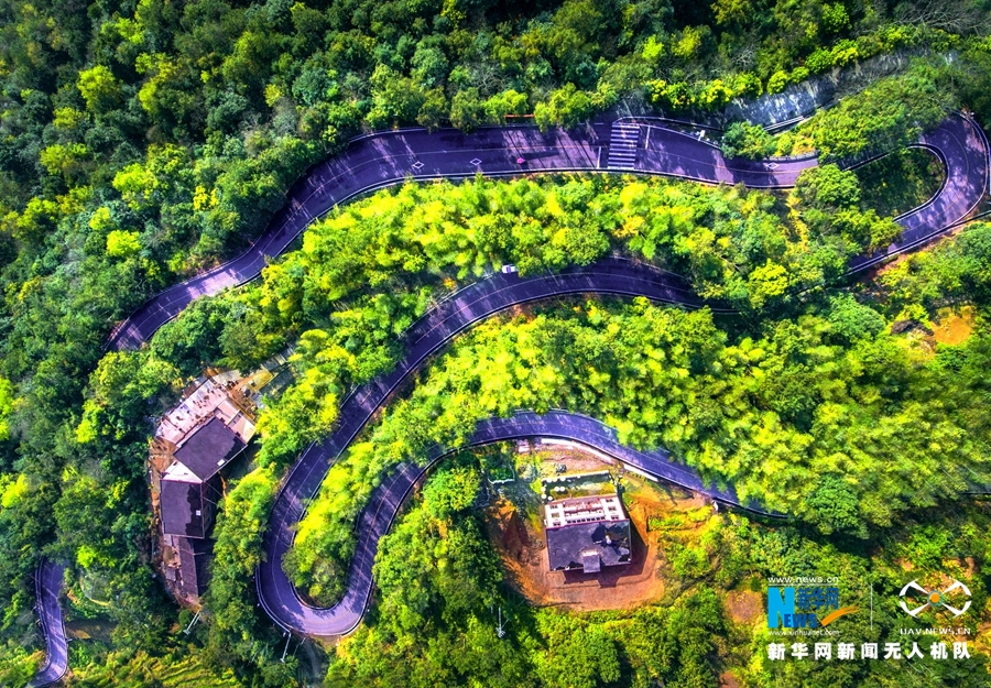 这是永春县玉斗镇的盘山公路,宛如一条玉带(无人机拍摄)。新华网 王雄 摄 飞手 康庆平