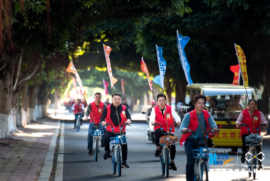 12月13日,永春县启动“我家门口那条路”展示周活动。图为交通运输志愿者开展“绿道骑行寻乡愁、共建四好农村路”主题骑行活动。新华网发(康庆平摄)