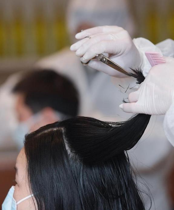 近期,由近百位发型师组成的志愿者团队在武汉为医护人员提供义务理发服务,据了解,该团队一周以来为近4000名医护人员义务理发。