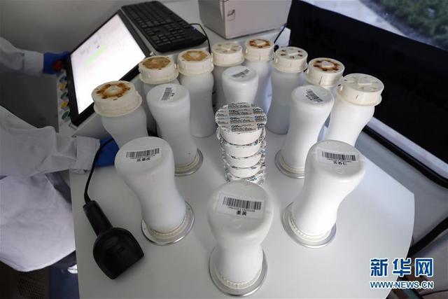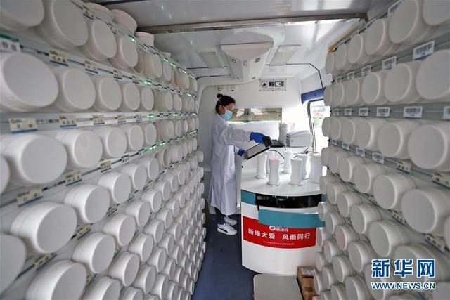 这是在江夏方舱医院拍摄的“流动应急智能中药房”(2月26日摄)。在武汉江夏方舱医院,有一个“流动应急智能中药房”。药房工作人员可以将药方提前输入电脑,从药柜上取下装有单味中药浓缩颗粒的药瓶放置在发药机上,扫描确认药品无误后,发药机就能自动按照药方将单味中药浓缩颗粒分别置于药盒的独立小格中。新华社记者沈伯韩 摄