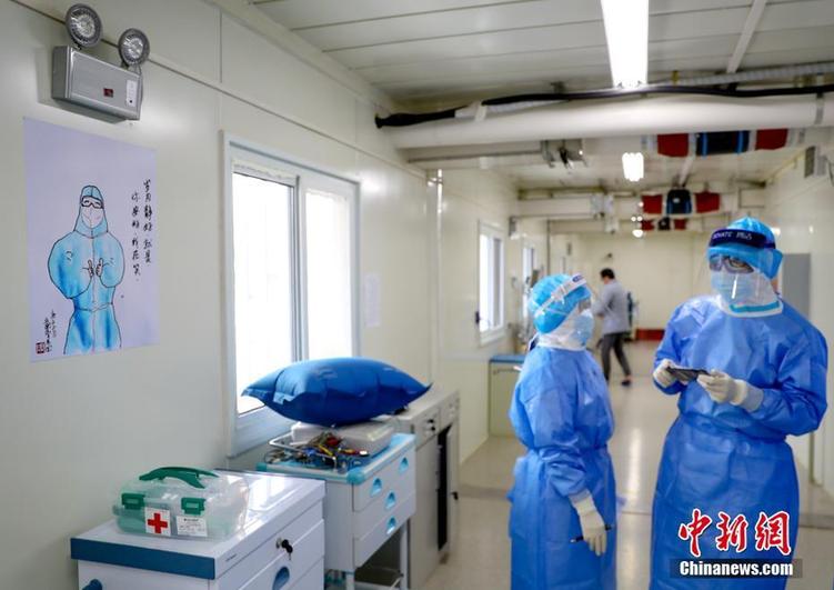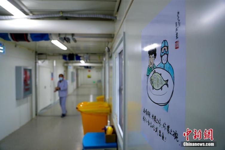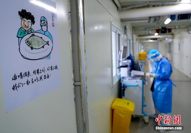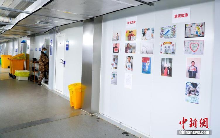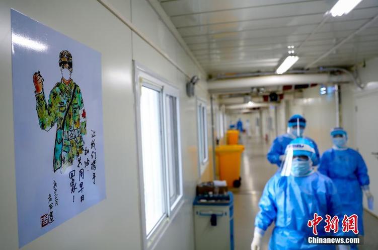 3月2日,武汉火神山医院病区内,一幅幅励志漫画,一首首信心满满的诗歌,让原本素色冷清的走廊变得温暖起来,也传递着白衣战士们战胜疫情的决心和勇气。中新社记者 张畅 摄