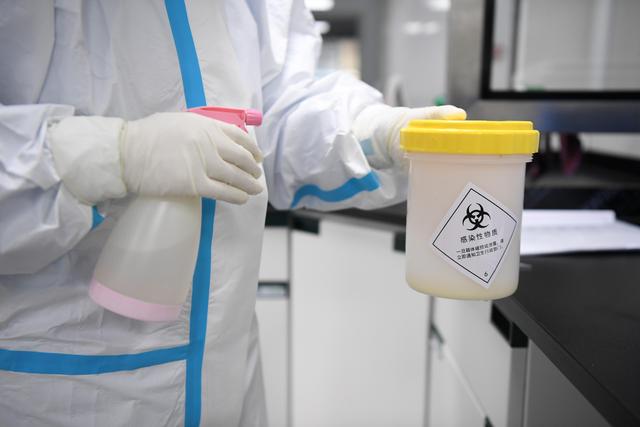 新华社照片,长沙,2020年3月10日 探访第三方核酸检测机构 3月10日,长沙卫实医学检测所的工作人员在前处理室为样本容器外部消毒。近日,位于湖南长沙经开区的长沙卫实医学检测所为长沙县的发热病人以及复工复产的企业等提供新冠肺炎核酸检测服务,日均检测样本约2500份左右,最高日检测样本达5000份。新华社记者 薛宇舸 摄