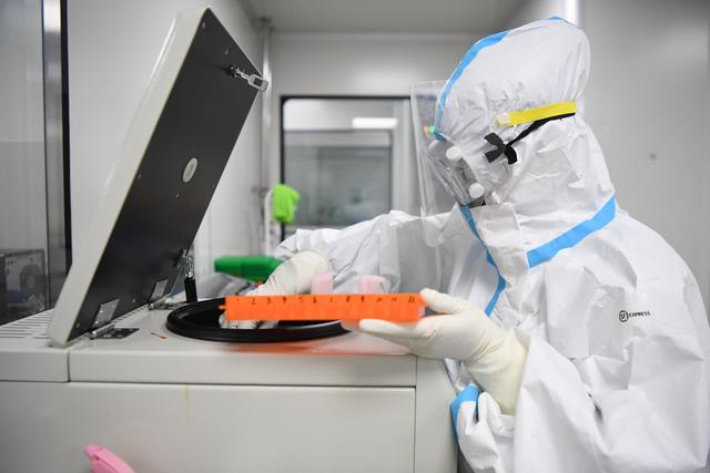 新华社照片,长沙,2020年3月10日 探访第三方核酸检测机构 3月10日,长沙卫实医学检测所的工作人员在核酸提取区将样本放入高速离心机。近日,位于湖南长沙经开区的长沙卫实医学检测所为长沙县的发热病人以及复工复产的企业等提供新冠肺炎核酸检测服务,日均检测样本约2500份左右,最高日检测样本达5000份。新华社记者 薛宇舸 摄