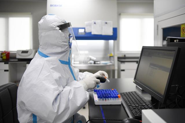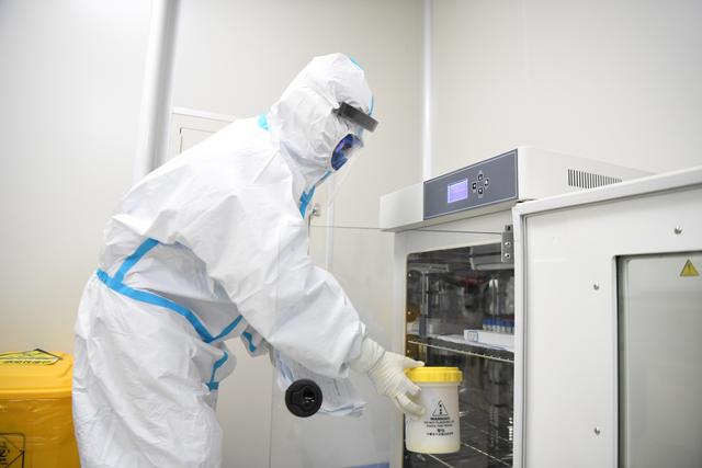 新华社照片,长沙,2020年3月10日 探访第三方核酸检测机构 3月10日,长沙卫实医学检测所的工作人员在前处理室对新冠肺炎核酸检测样本进行灭活工作。近日,位于湖南长沙经开区的长沙卫实医学检测所为长沙县的发热病人以及复工复产的企业等提供新冠肺炎核酸检测服务,日均检测样本约2500份左右,最高日检测样本达5000份。新华社记者 薛宇舸 摄