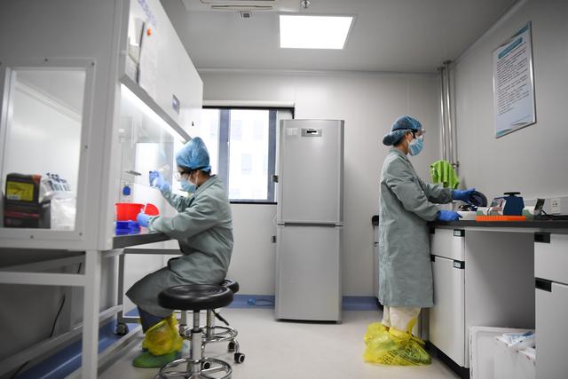 新华社照片,长沙,2020年3月10日 探访第三方核酸检测机构 3月10日,长沙卫实医学检测所的工作人员在核酸提取区对样本进行处理。近日,位于湖南长沙经开区的长沙卫实医学检测所为长沙县的发热病人以及复工复产的企业等提供新冠肺炎核酸检测服务,日均检测样本约2500份左右,最高日检测样本达5000份。新华社记者 薛宇舸 摄