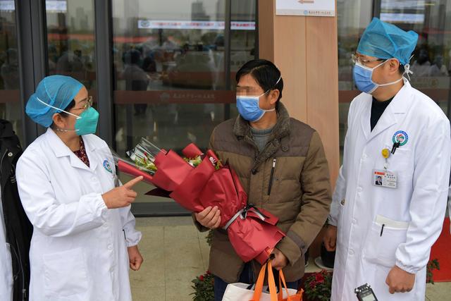 ↑南昌大学第一附属医院院长张伟(左一)向新冠肺炎治愈出院患者叮嘱日常注意事项(1月27日摄)。新华社记者 彭昭之 摄