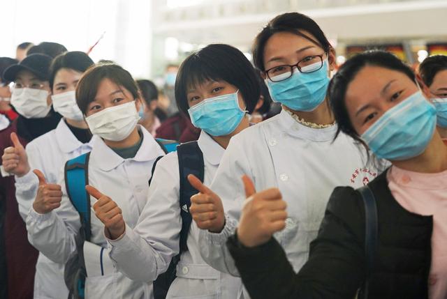 ↑江西援助武汉医疗护理队成员在南昌市昌北机场准备登机(2月4日摄)。新华社记者 万象 摄