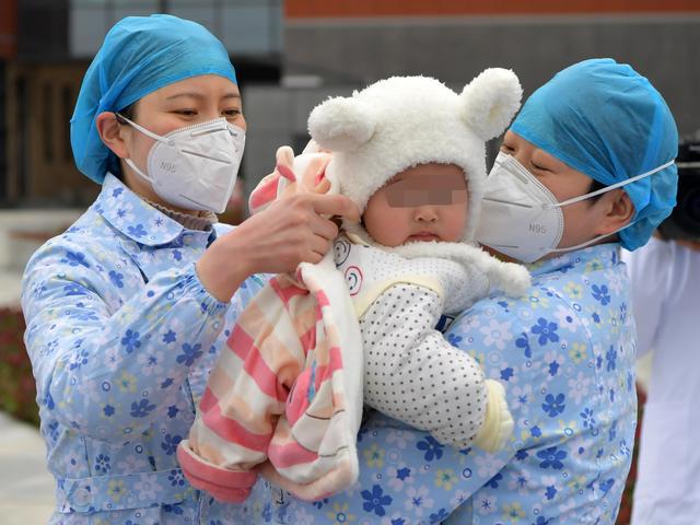 ↑南昌大学第一附属医院象湖院区儿科主管护师邹芹(右)和儿科护士长徐琴送一名7个月大的新冠肺炎治愈患儿出院(2月19日摄)。新华社记者彭昭之 摄