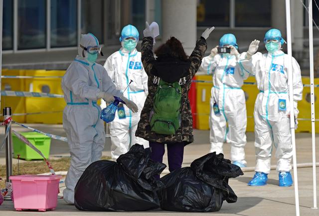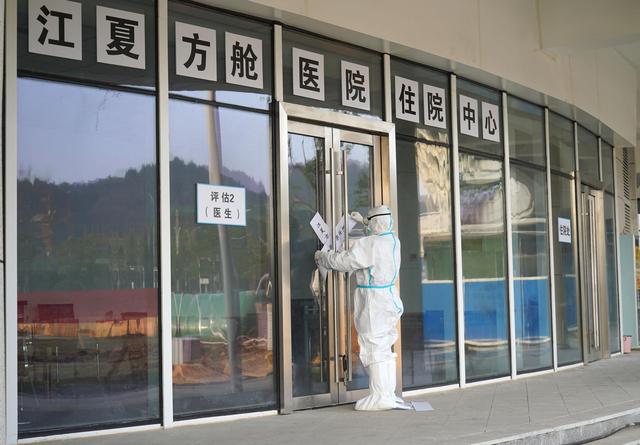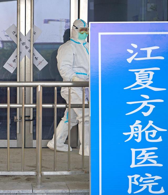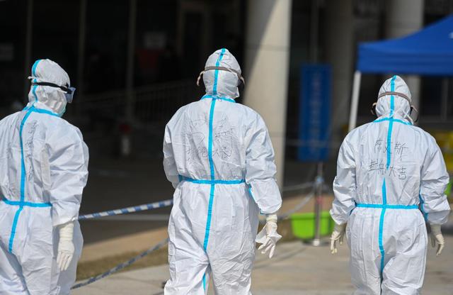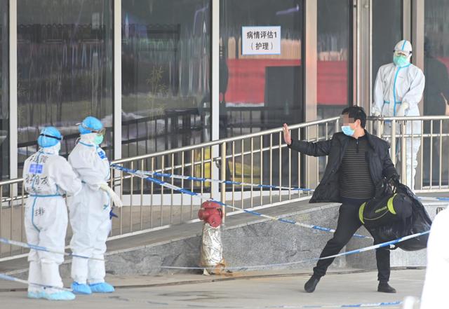 3月10日,江夏方舱医院三位医务人员送走新冠肺炎治愈患者后返回。