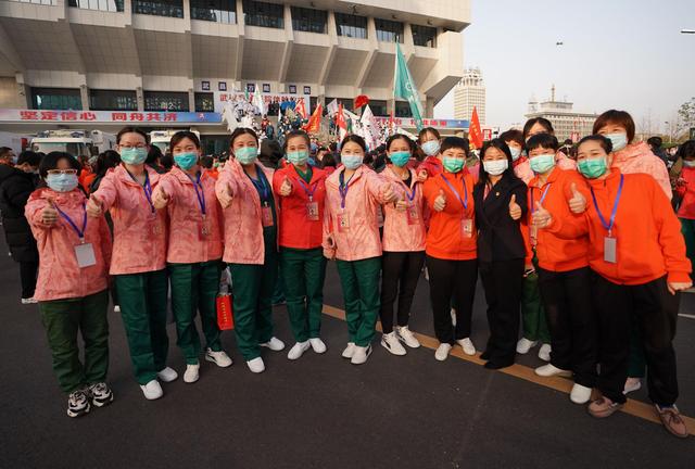 3月10日,在武汉武昌方舱医院休舱仪式后,河北省医疗队队员合影。