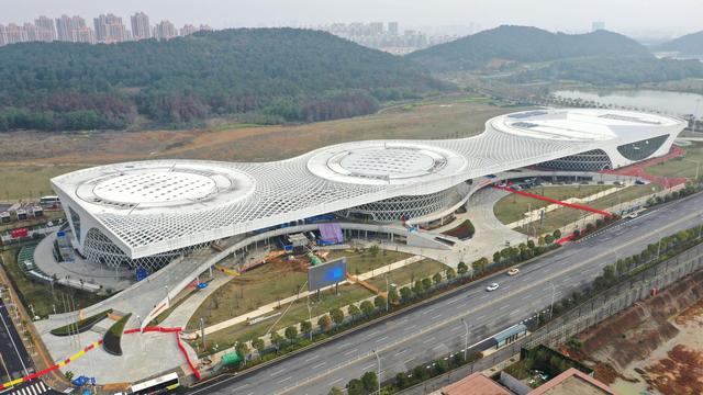 这是3月10日拍摄的位于武汉市江夏大花山户外运动中心的江夏方舱医院(无人机照片)。