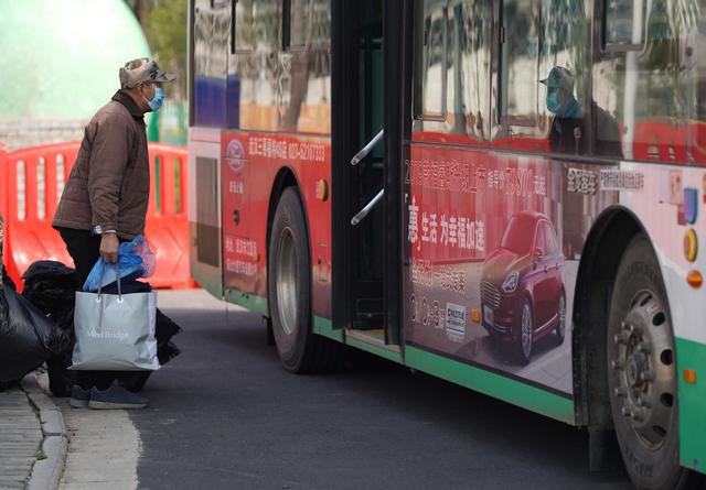 3月10日,在位于武汉市江夏大花山户外运动中心的江夏方舱医院,新冠肺炎治愈患者等待上大巴。