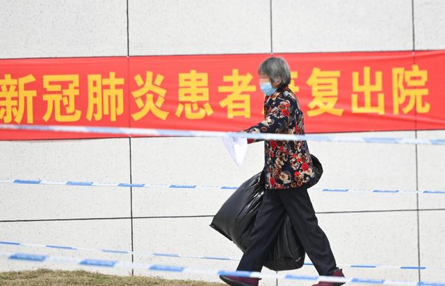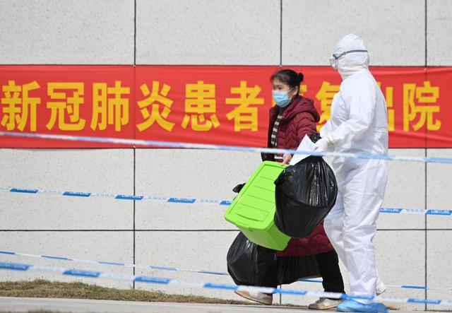3月10日,一位新冠肺炎治愈患者走出江夏方舱医院。