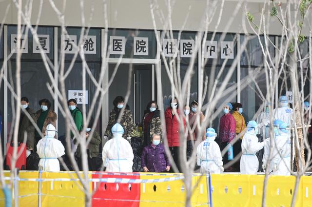 3月10日,转院患者走出江夏方舱医院,准备乘坐转运车到相应定点医院。