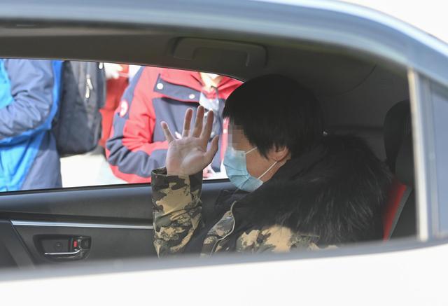3月10日,一位新冠肺炎治愈患者乘车离开江夏方舱医院。