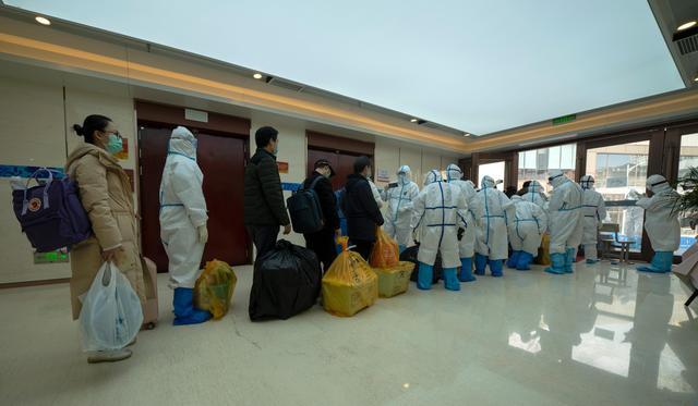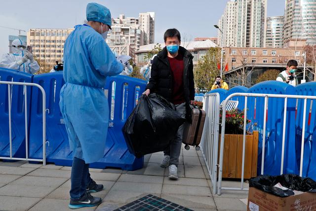 新华社照片,武汉,2020年3月10日 武昌方舱医院最后一批痊愈病人出舱 3月10日,在武昌方舱医院,医务人员帮一名即将出舱的新冠肺炎治愈患者提着个人物品,准备出舱。当日,武昌方舱医院最后一批痊愈病人共49人出舱。 新华社记者 沈伯韩 摄