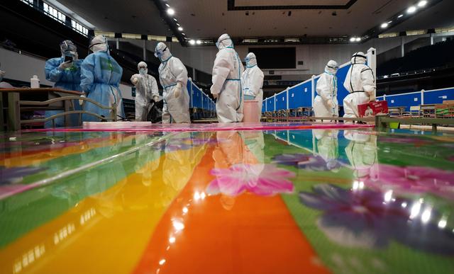 新华社照片,武汉,2020年3月10日 最后的方舱记忆 3月10日,在武昌方舱医院,新冠肺炎治愈患者出舱后,工作人员巡视方舱。 当日,武昌方舱医院最后一批痊愈病人共49人出舱。 新华社记者费茂华 摄