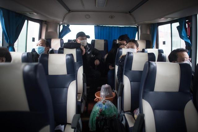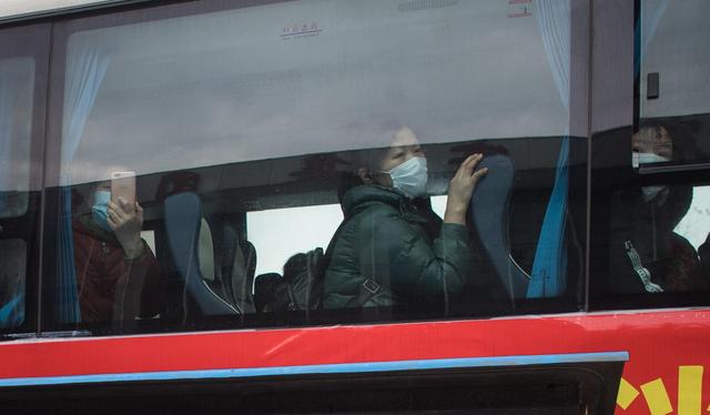 3月12日,解除隔离的治愈患者在康复驿站等待出发。