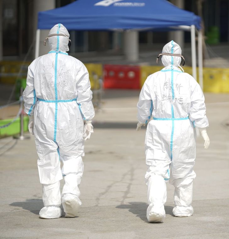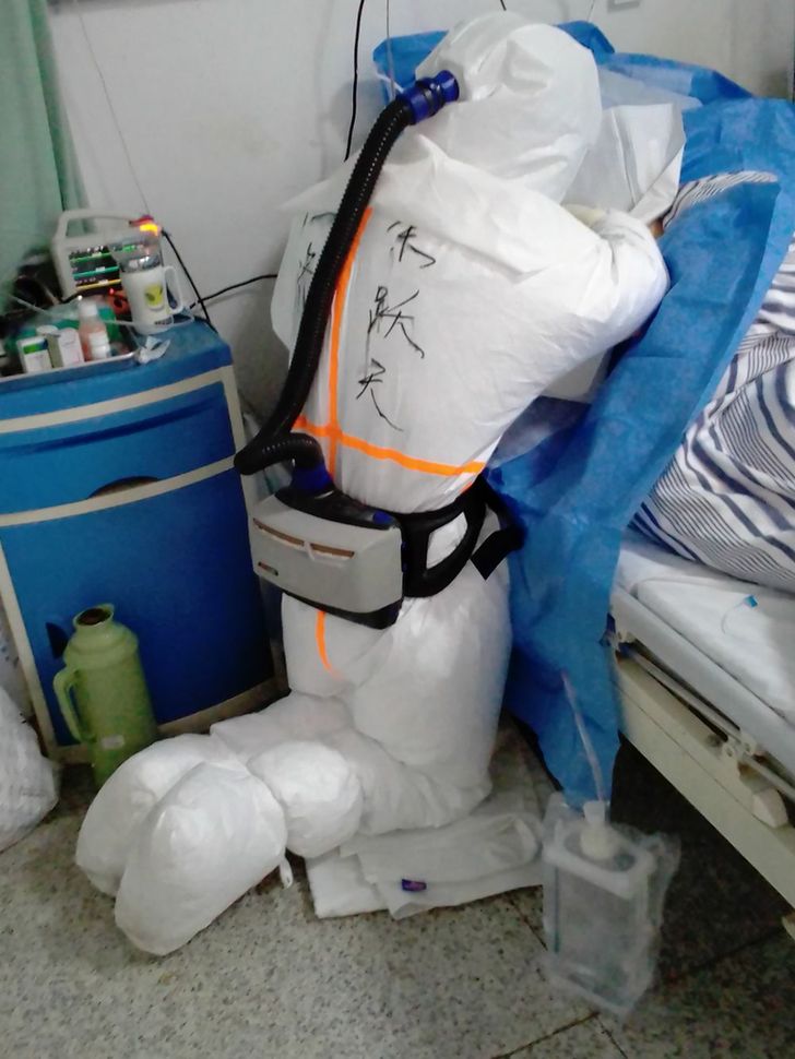他们的防护服下面全是汗水
