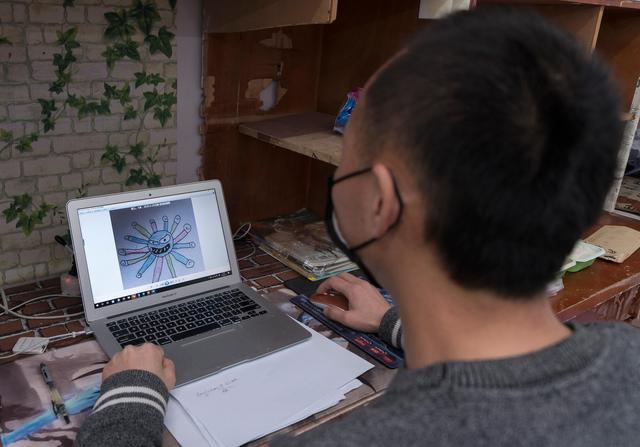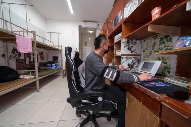3月11日,陈志在武汉软件工程职业学院康复驿站的学生宿舍里工作。