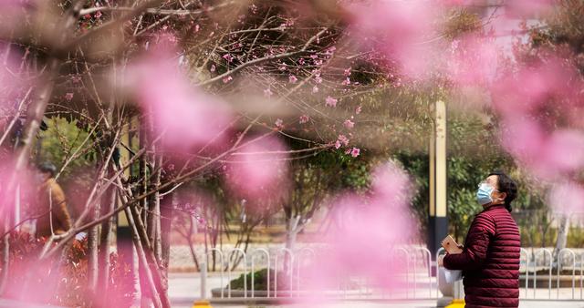 随着气温升高,春意在武汉的枝头上萌动,花朵渐次开放。新华社记者 费茂华 摄