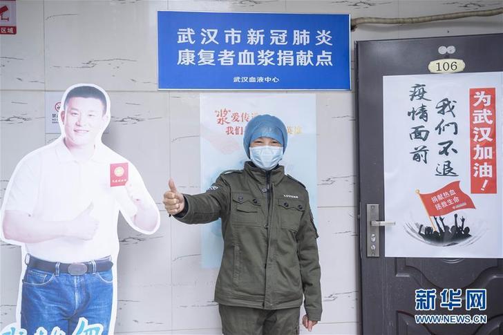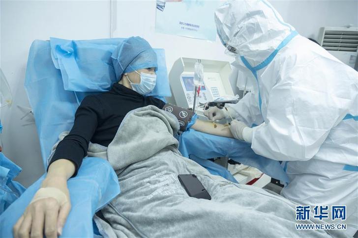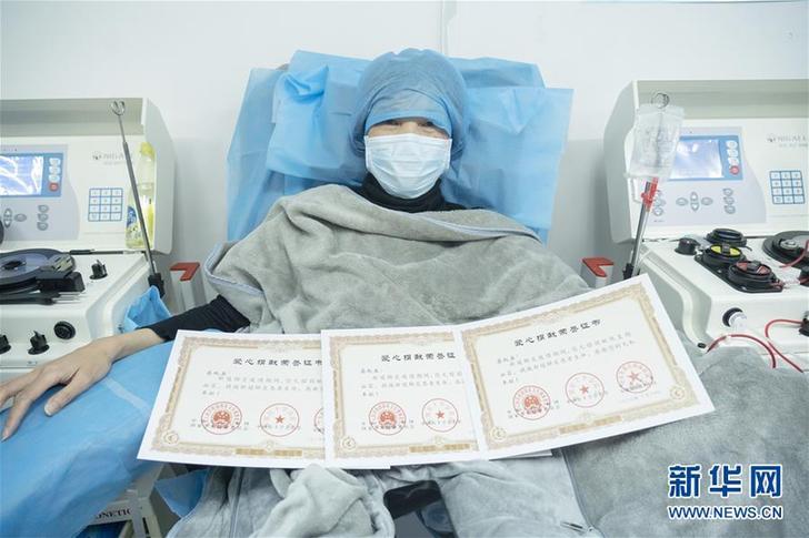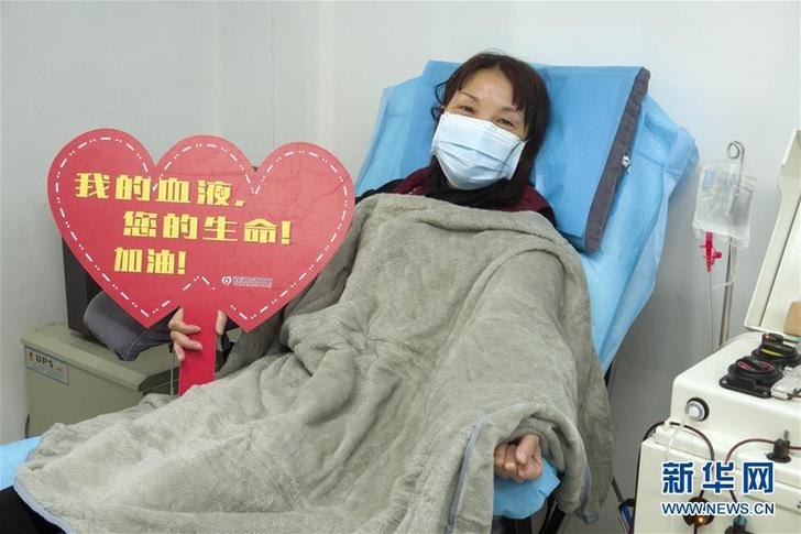 2月17日,在武汉市血液中心,新冠肺炎康复者,来自汉口医院的护士蔡桃英在献血浆时拍照留念。在抗击新冠肺炎疫情期间,一些新冠肺炎康复者在愈后自愿无偿捐献血浆,让一份份爱心凝聚成战胜疫情的强大动力。 新华社记者 才扬 摄