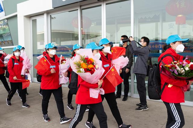 3月21日,医疗队员在驻地登上大巴,前往襄阳刘集机场。当日,辽宁省对口支援襄阳医疗队389名队员圆满完成支援任务,乘包机返回沈阳。新华社发(谢剑飞摄)