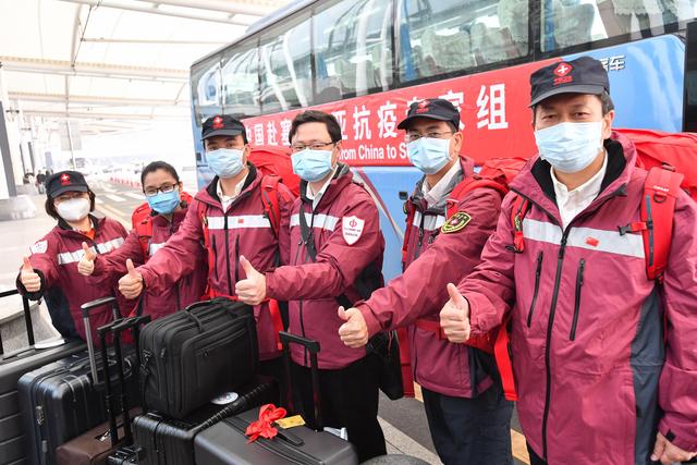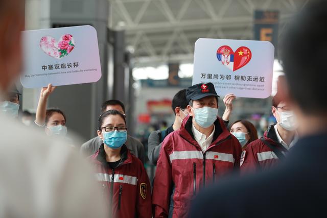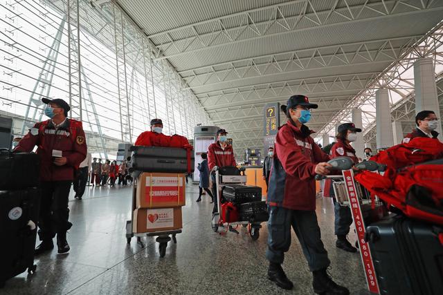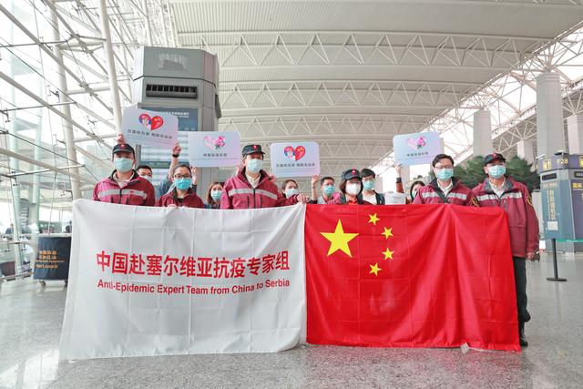 3月21日,中国赴塞尔维亚抗疫医疗专家组从广州白云国际机场出发。