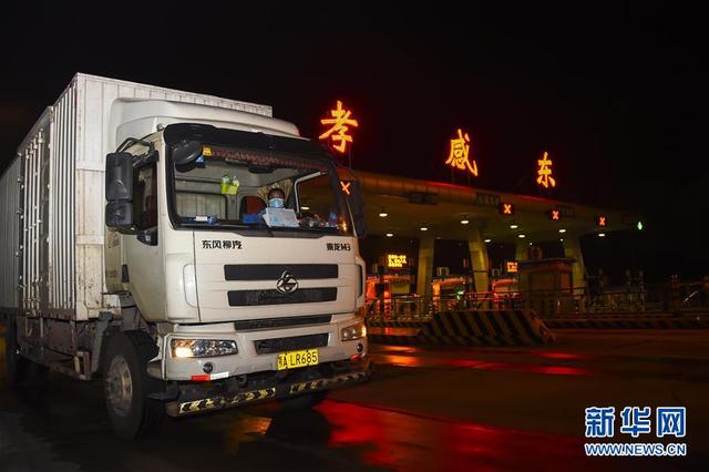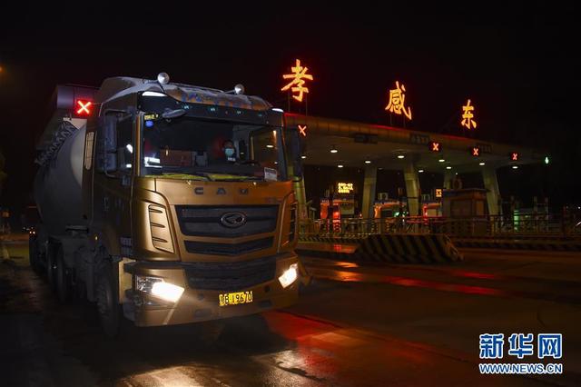 3月25日零时十分,一辆货车驶出京港澳高速孝感东出口。从3月25日零时起,湖北省除武汉市以外地区解除离鄂通道管控,有序恢复对外交通,离鄂人员凭湖北健康码“绿码”安全有序流动。 新华社记者胡虎虎 摄