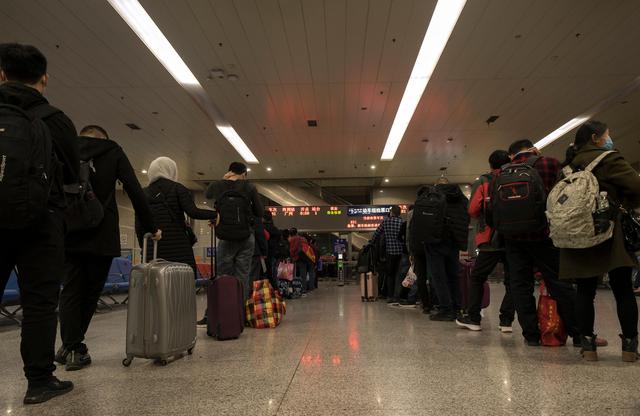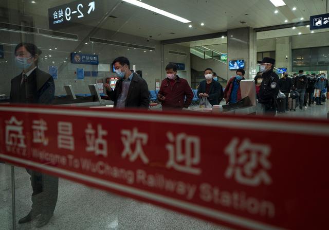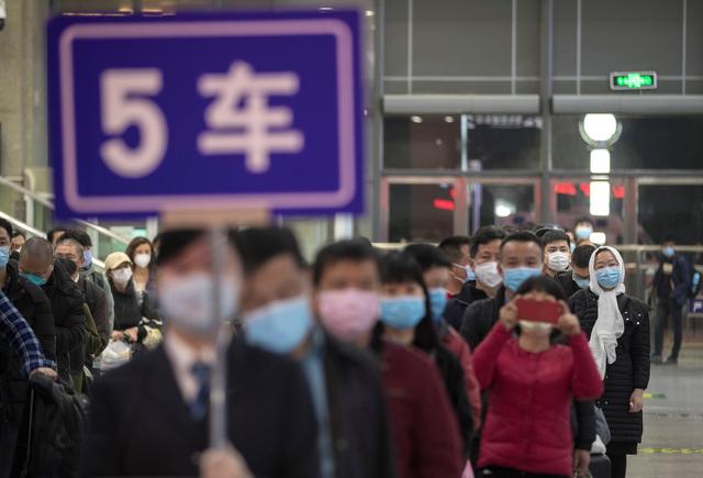 ↑4月8日凌晨,乘客在武昌火车站排队等候K81次列车。