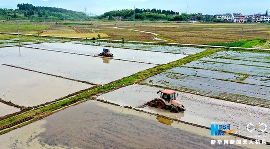 图为农民正驾驶翻耕机翻耕田地,为水稻种植做好准备。新华网发 王华斌摄