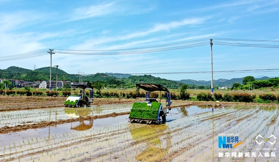 图为台州仙居农户们正操作插秧机插秧。新华网发 王华斌摄