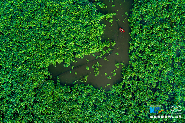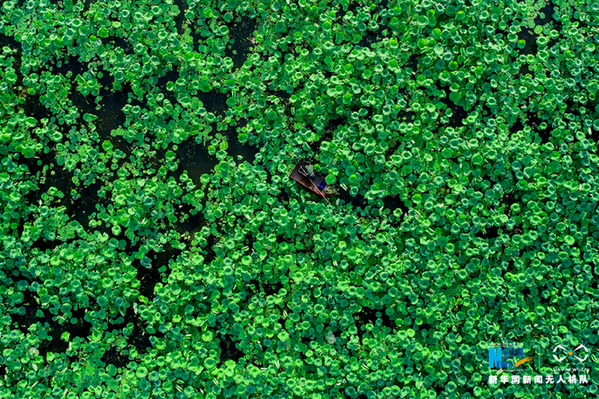天鹅湖村千亩荷塘,生机勃勃。新华网发(张维堂 摄)