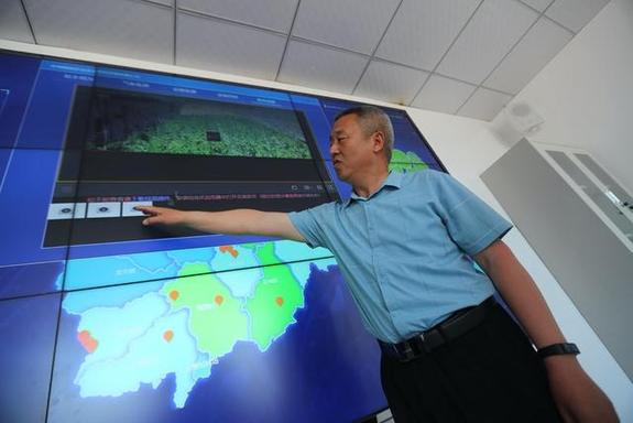 走出物联网“诊室”,刚来到地边,一架一米多宽的无人机由远及近飞了过来?!罢馐墙衲晔痉对按蛩憧沟纳缁峄瘢奕嘶缛髋┮??!闭呕岢冀樯?,一台无人机背一桶25公斤药液一次可以喷洒20亩菜地,一天可以喷洒500亩。人工打药一天可以喷洒2.5亩地。无人机效率是人工的200倍。工作效率立见高下。打药、栽苗,接下来还将引进更多的高科技社会化服务,帮大家丰产增收。